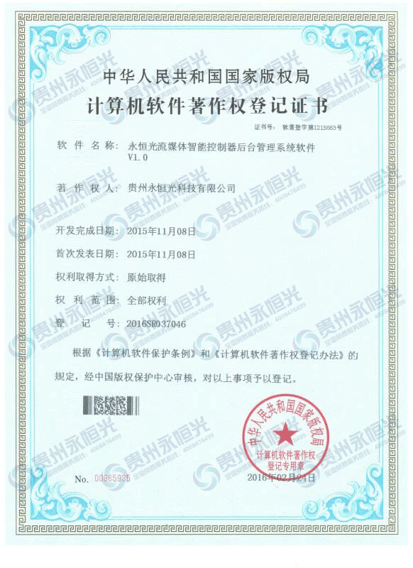 計(jì)算機(jī)軟件著作權(quán)登記證書三