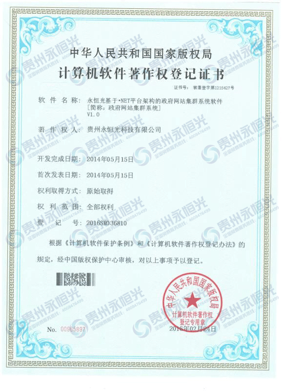計(jì)算機(jī)軟件著作權(quán)登記證書五 >